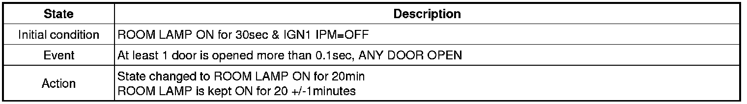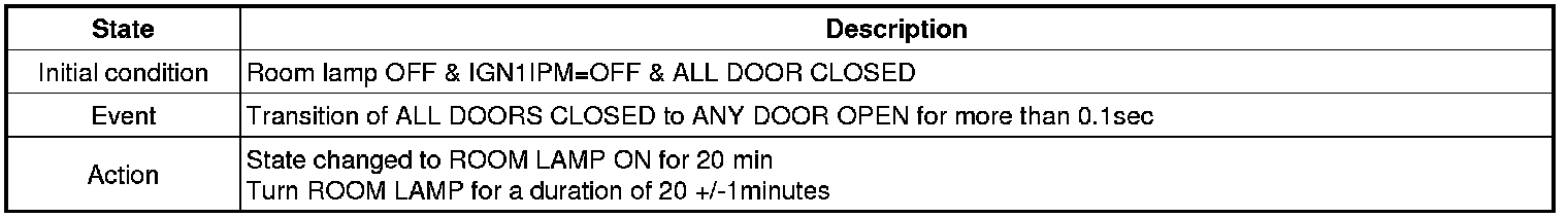 If the state of IGN Switch FAM is IGN or ST and Light Switch Status state is Auto Light Switch On, then TAIL LAMP RELAY output and HEAD LAMP LOW RELAY output are controlled by FAM with filtering time in accordance with Auto Light Out Status state change that is AUTO LIGHT Sensor's INPUT from IPM and according to specifications for each lamp described in below.