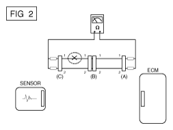 - With each connector still connected, measure the voltage between the chassis ground and terminal 1 of each connectors (A), (B) and (C) as shown in Fig 4.