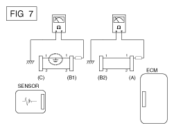 - Disconnect connector (B), and measure for resistance between connector (C) and (B1) and between (B2) and (A) as shown in Fig 3.