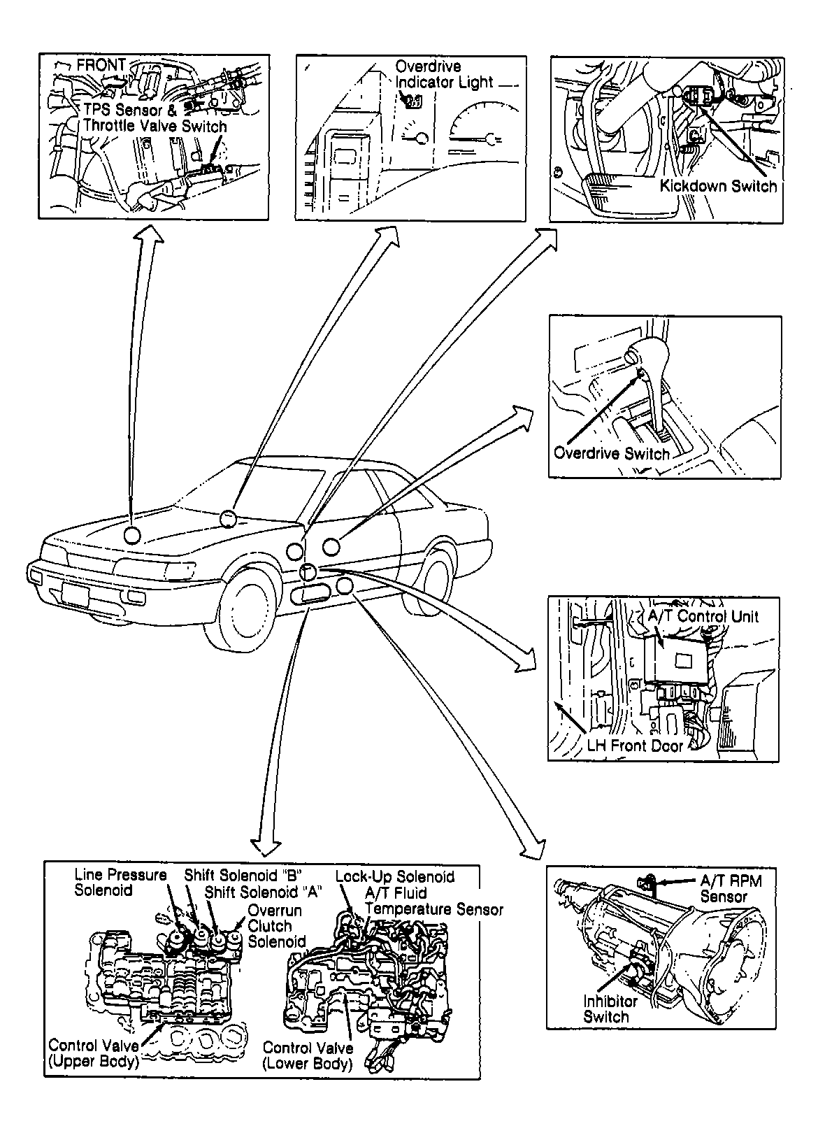 A/T Control Unit Behind left kick panel. See Figure & Figure .