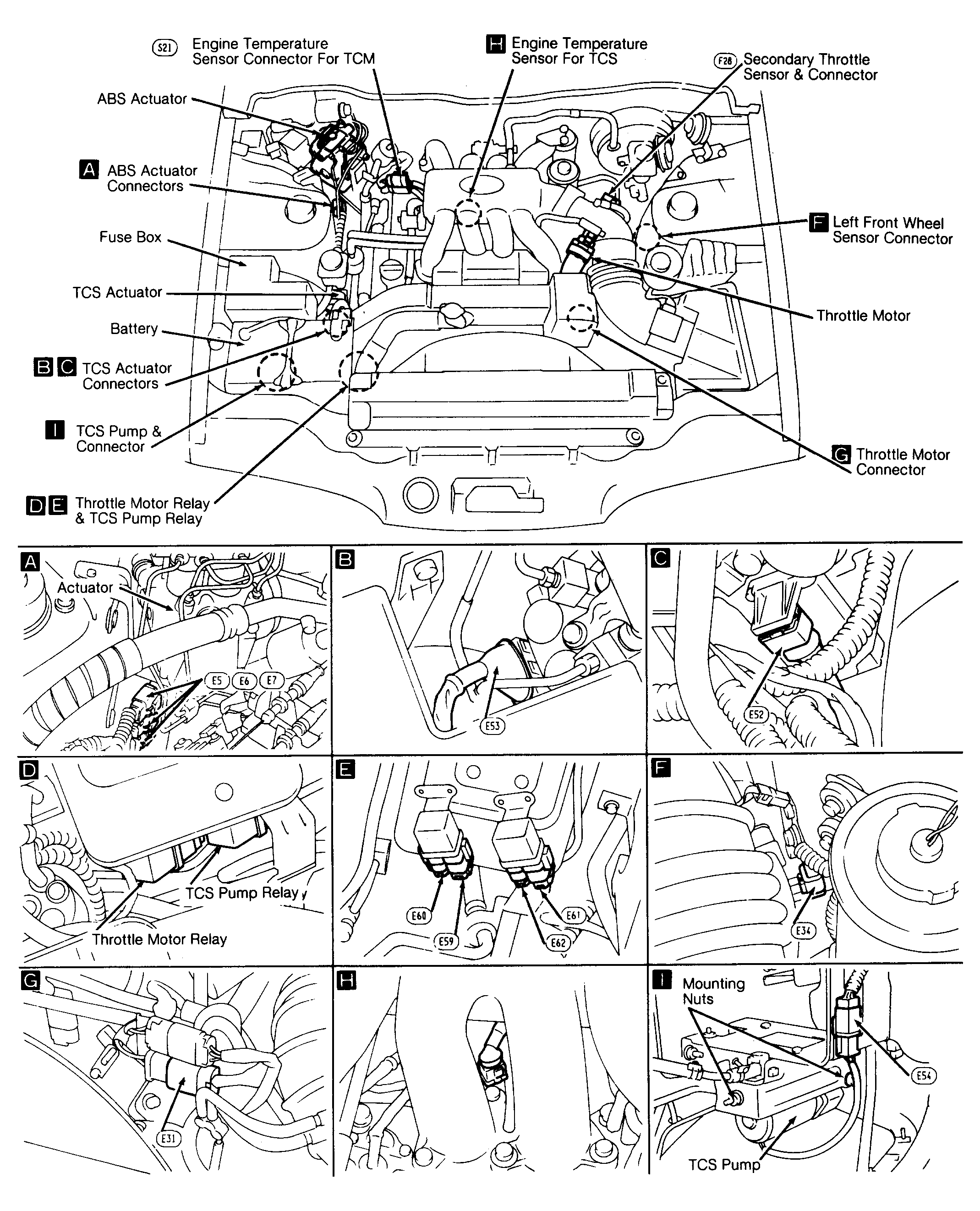 The Infiniti Traction Control System (TCS) uses engine throttle control and individual control of the left and right rear brakes to prevent driving wheel spin during acceleration or cornering. The TCS system consists of wheel sensors, TCS Control Unit, Throttle Control Module (TCM), throttle motor, TCS actuator, SLIP indicator and TCS OFF indicator. See Fig 1 and Fig 2 .