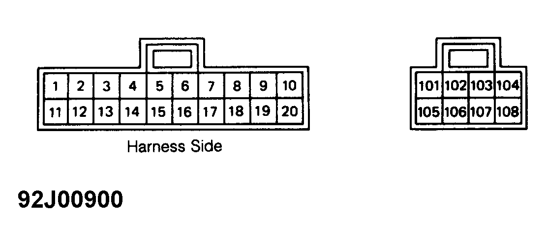 On harness side measure voltage between terminals No. 10 or 20, and terminals No. 2, 3, 4, 5, 7, 14 and 15. See TCM INSPECTION TABLE. See Figure , Fig 1 and Fig 2 .