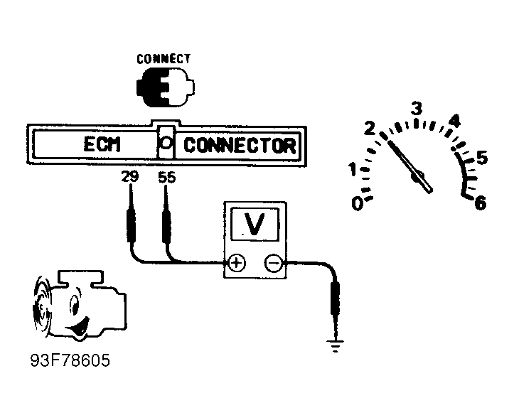 Turn ignition off. Disconnect ECM harness connector and EFI sub-harness No. 2 connector. Verify harness continuity between EFI sub-harness No. 2 connector terminal "c" (White wire) and ECM terminal No. 23, and connector terminal "f" (White wire) and ECM terminal No. 24. If continuity is present, go to next step. If continuity is not present, repair harness or connectors as necessary. See Figure