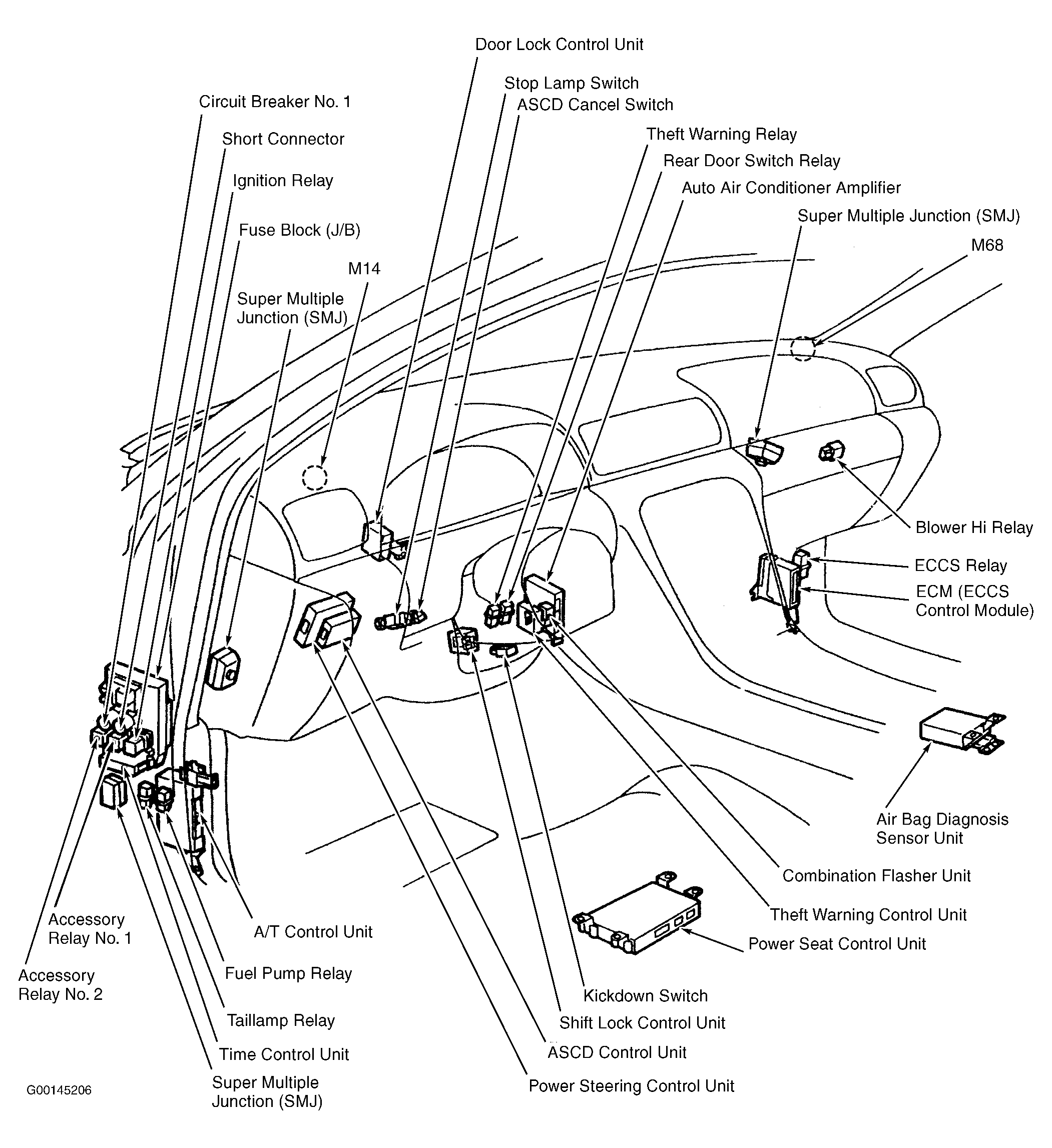 | Shift Lock Control Unit | Behind left side of dash, right of steering column. See Figure . |