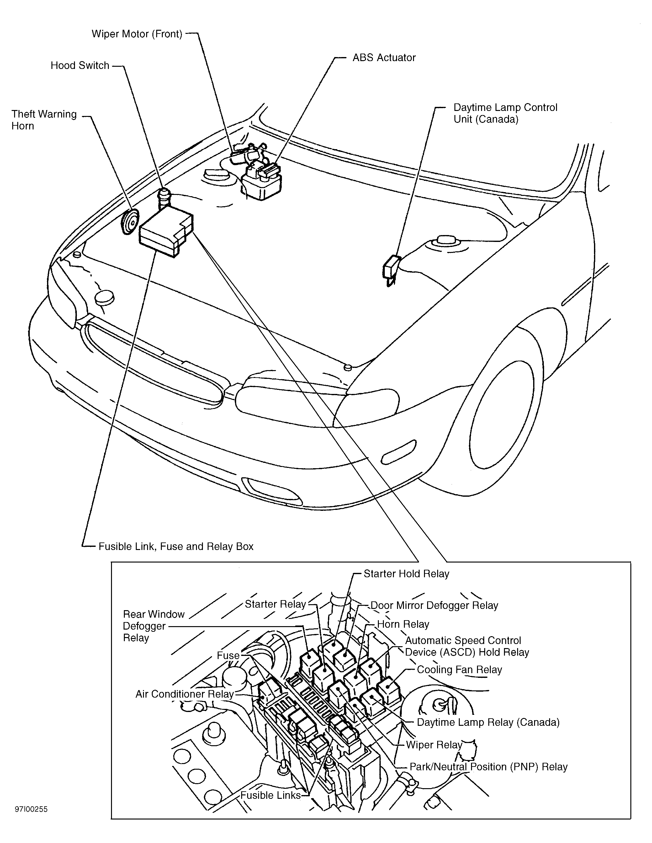 | Headlamp Control Relay Unit | Left rear corner of engine compartment. |