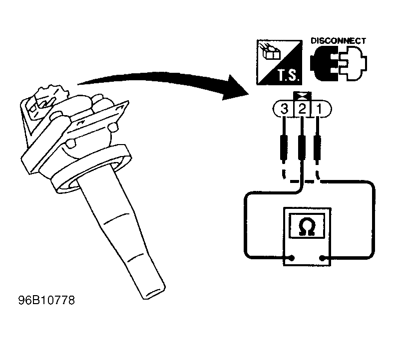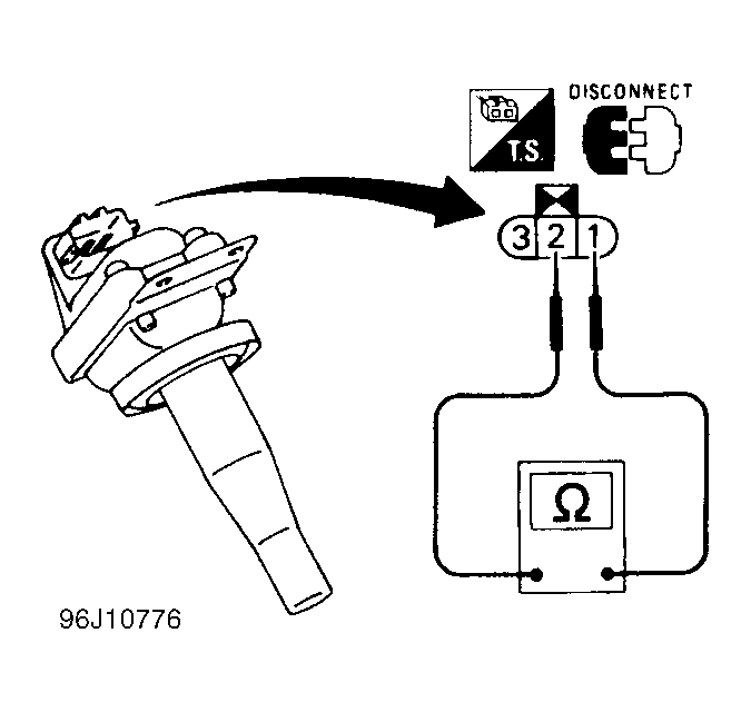 - On I30, disconnect ignition coil harness connector. Using ohmmeter, check for continuity between coil terminals No. 1 and 2. If continuity is not present, replace ignition coil. See Fig 1