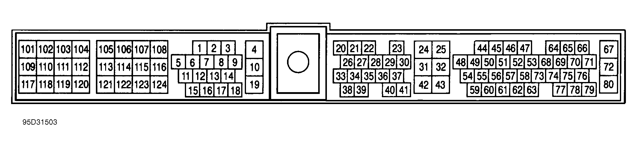 - Turn ignition off. Loosen and retighten engine ground screws, located on intake manifold near fuel injectors. Disconnect PCM harness connector. Check continuity between ground and PCM harness connector terminals No. 10, 19, 25, 32, 108, 116 and 124. If continuity exists, go to next step. If continuity does not exist, repair open ground circuit.