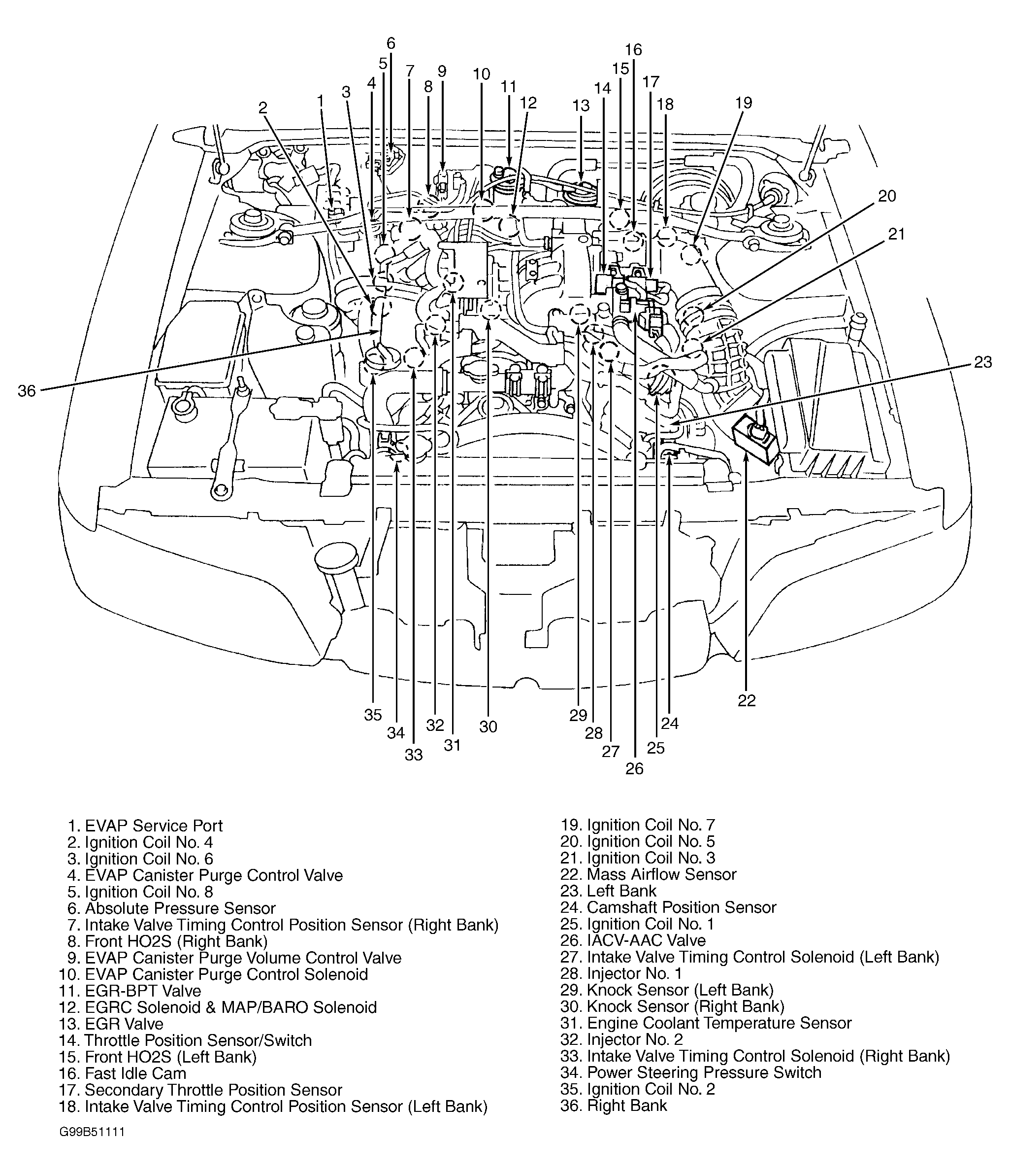 Fig 1: Identifying Underhood Engine Performance Component Locations (G20)