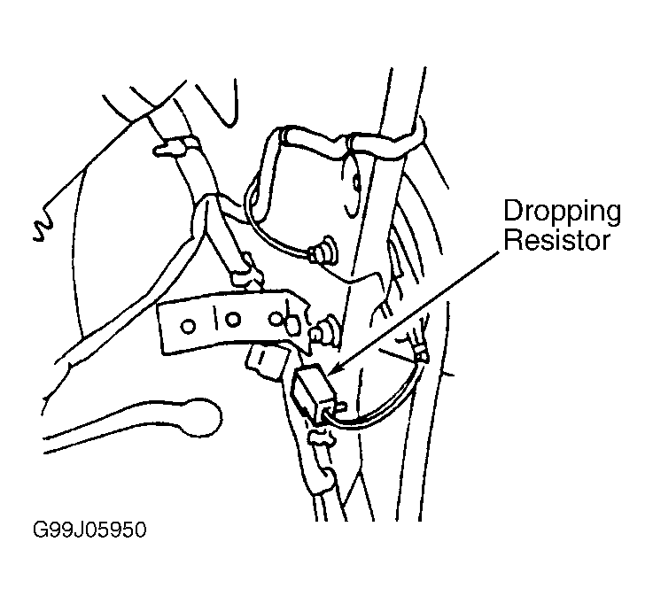 - Check continuity between body ground and dropping resistor harness connector terminal No. 2 (Black wire). Also check circuit for short to voltage. Repair as necessary and retest system. If ground circuit is okay, go to next step.