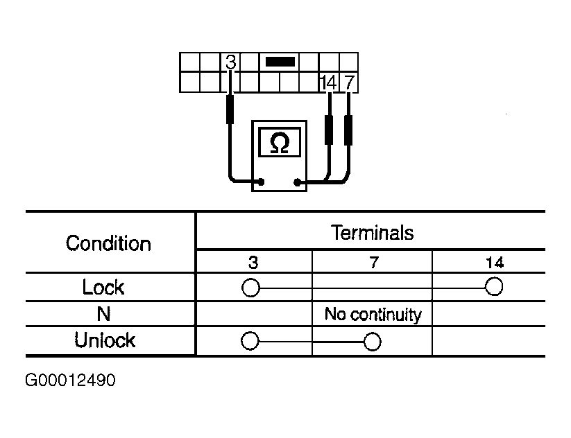 - Disconnect driver's door lock/unlock switch connector. Check continuity between specified terminals. See Fig 1