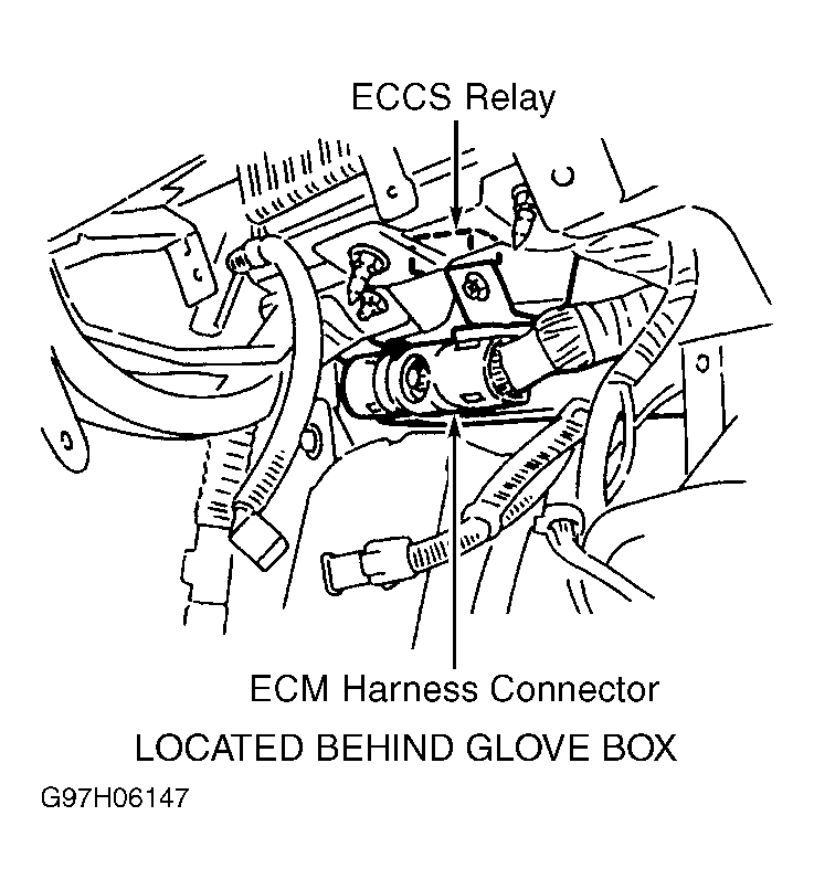 - Disconnect ECCS relay harness connector. Measure voltage between ground and ECCS relay harness connector terminals No. 2 and 3 (Red wires). See Figure and Figure