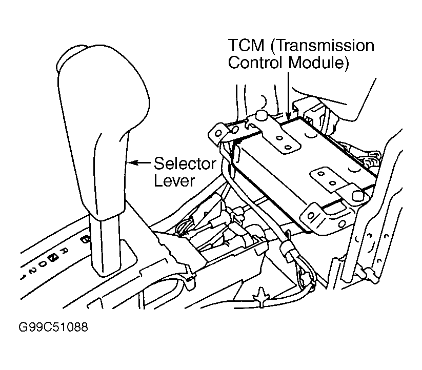 - Yellow/Red wire between ECM harness connector terminal No. 54 and TCM harness connector terminal No. 5.