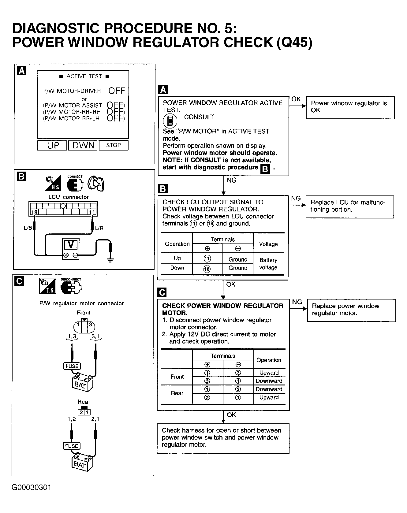 Home >> Infiniti >> 2001 >> Q45 Base >> Repair and Diagnosis >> Body & Frame >> Windows >> Power Windows >> Trouble Shooting >> Power Window System