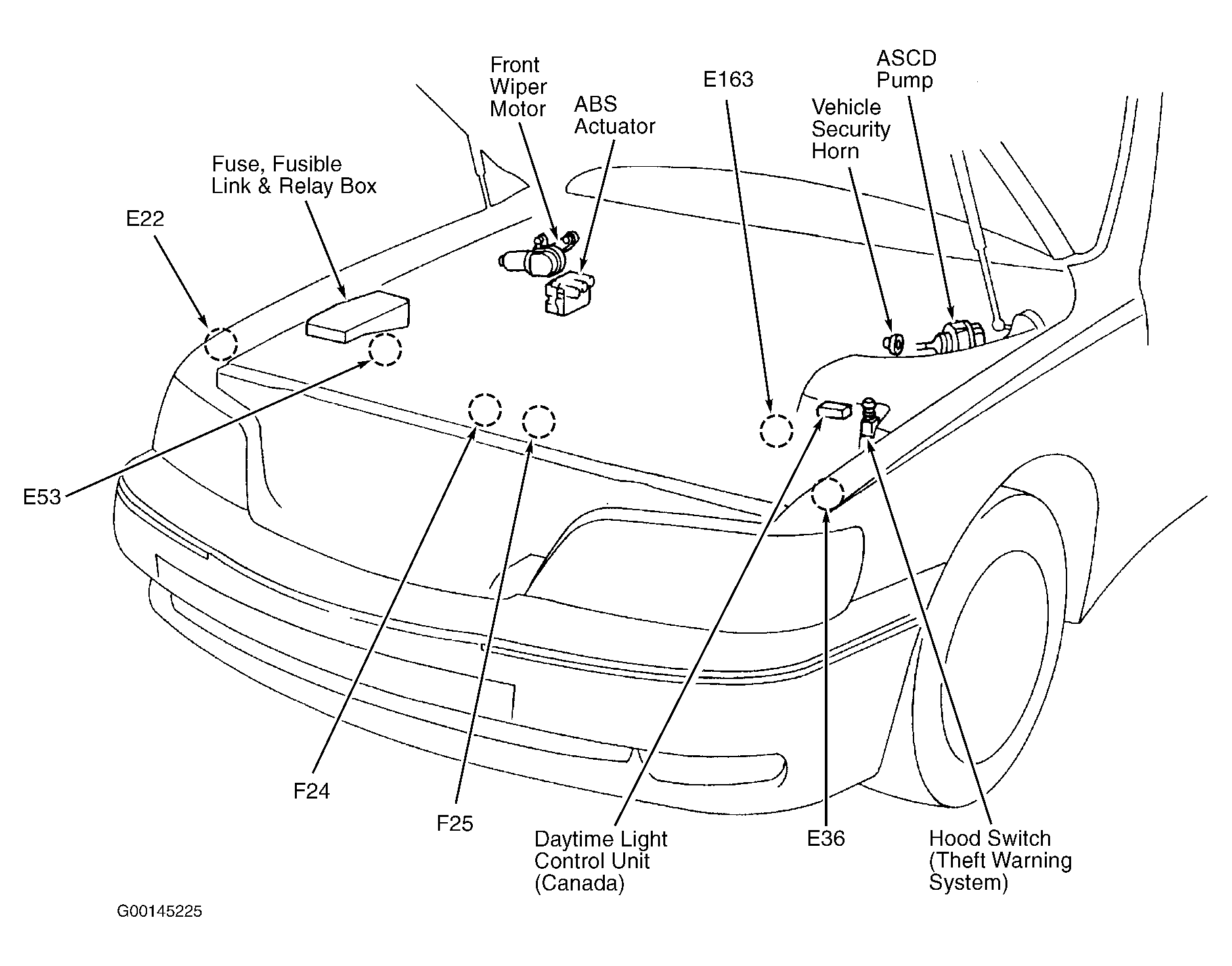 | Daytime Light Control Unit (Canada) | Left side of engine compartment. See Figure . |