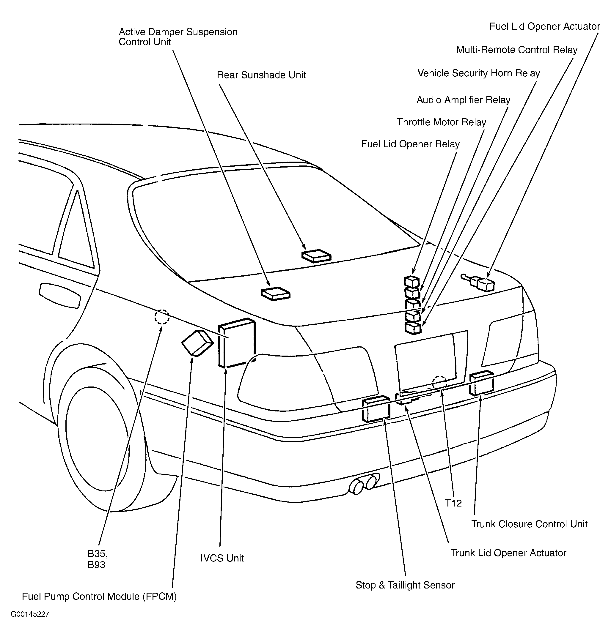 | Active Damper Suspension Control Unit | Under left side of rear package shelf. See Figure . |