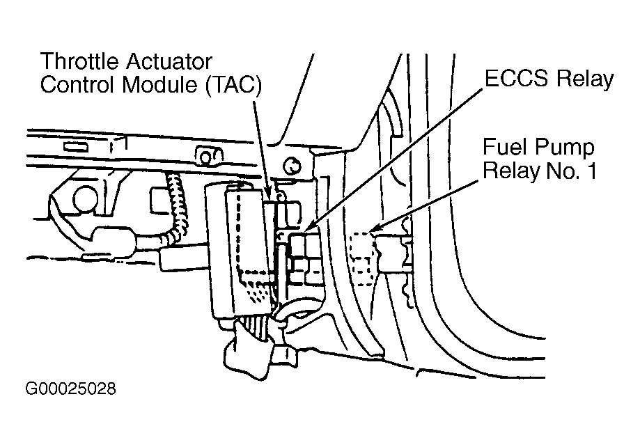 - Check ECCS relay. See RELAYS & SOLENOIDS . Replace if necessary. If ECCS relay is okay, go to next step.
