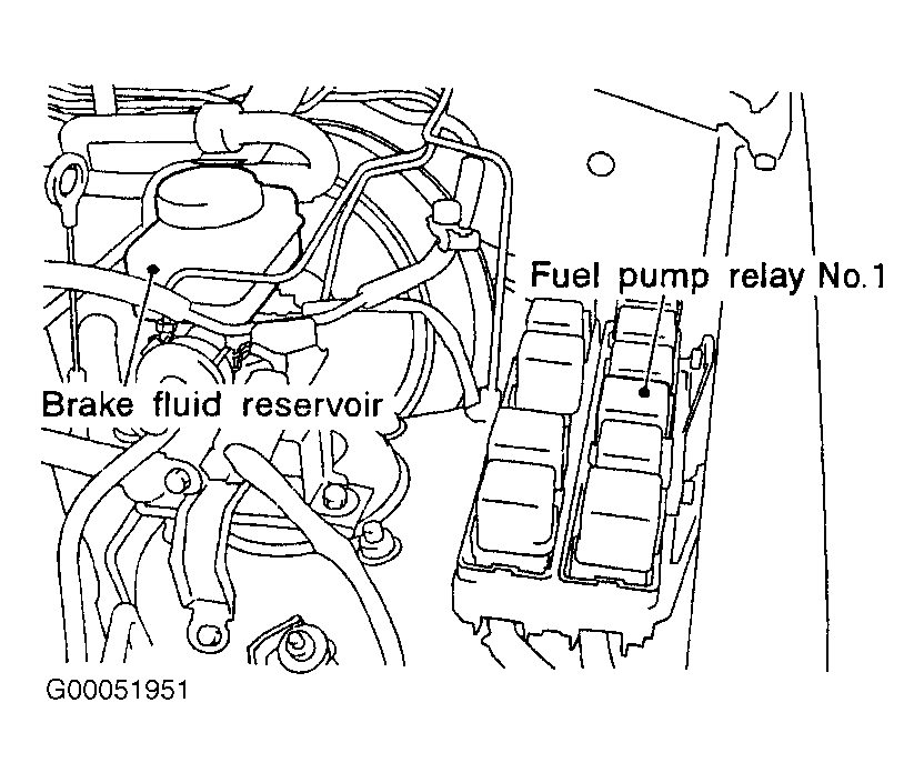 Fig 1: Locating Fuel Pump Relay No. 1 (Pathfinder & QX4)