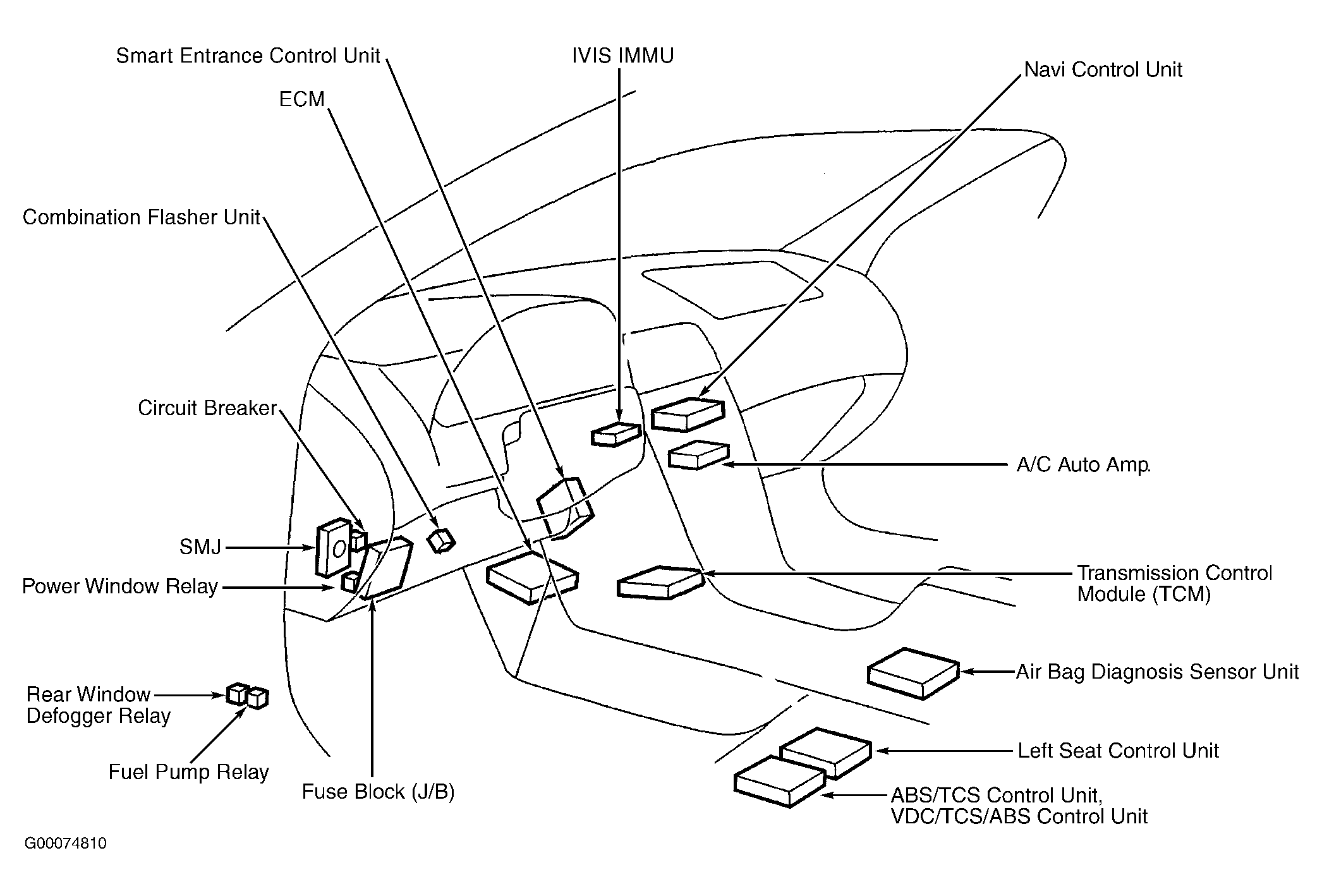 | VDC Relay Box | At left rear of engine compartment, near ABS actuator & electrical unit. |