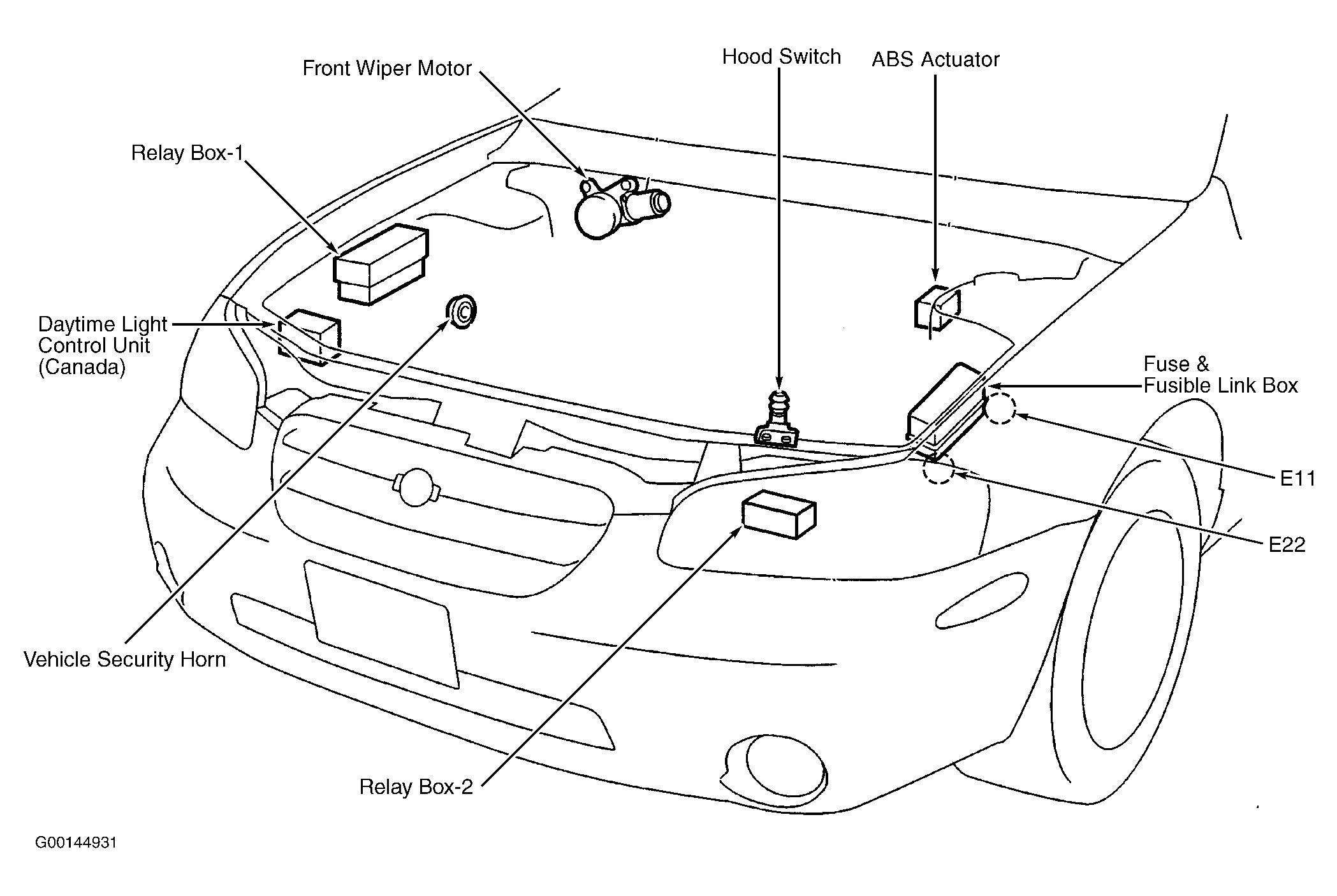 | Relay Box-2 | At left front corner of engine compartment. See Figure . |