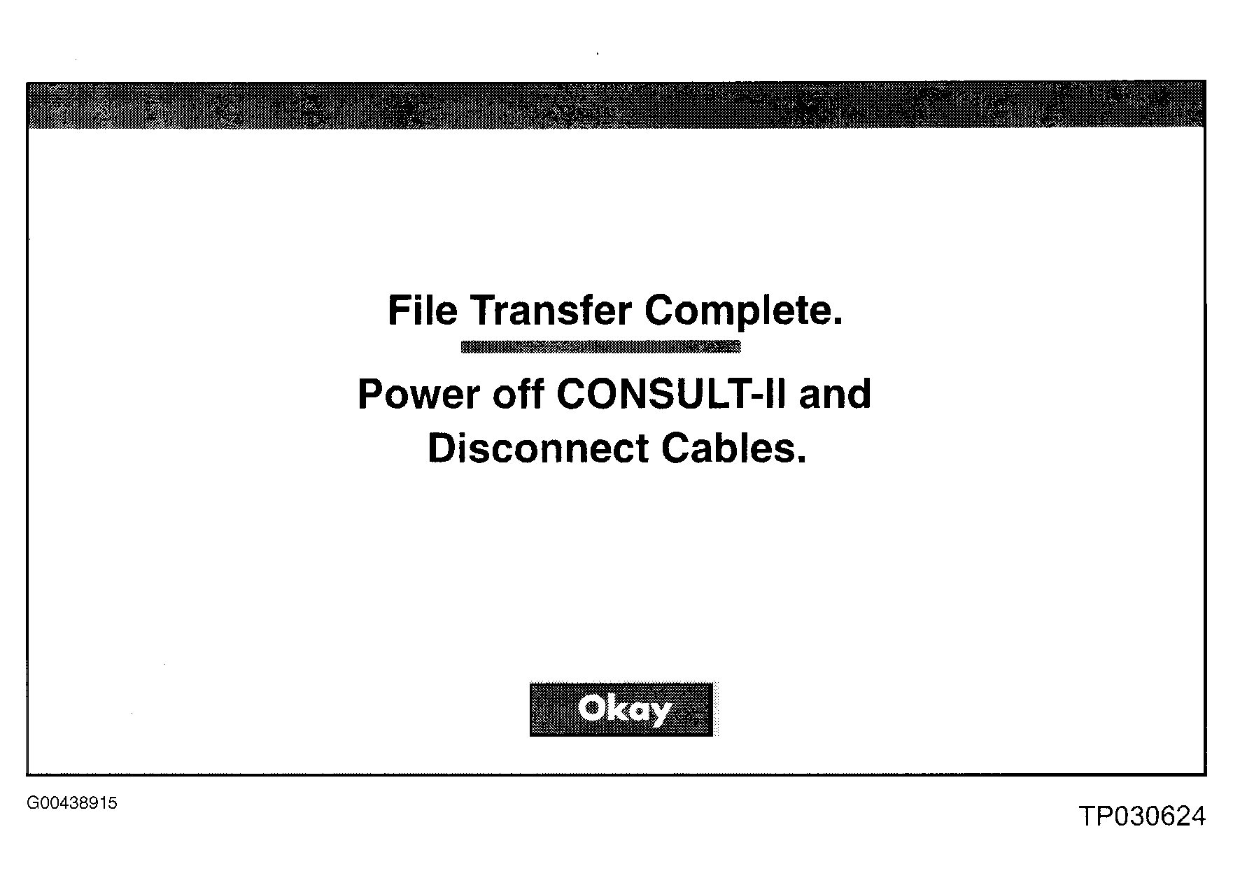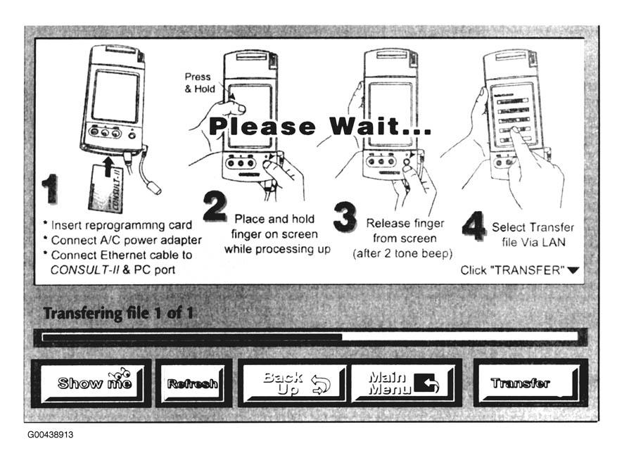 CAUTION: You must leave the vehicle, CONSULT-II, and the DLC-II cable "undisturbed" (don't touch) until reprogramming is complete.