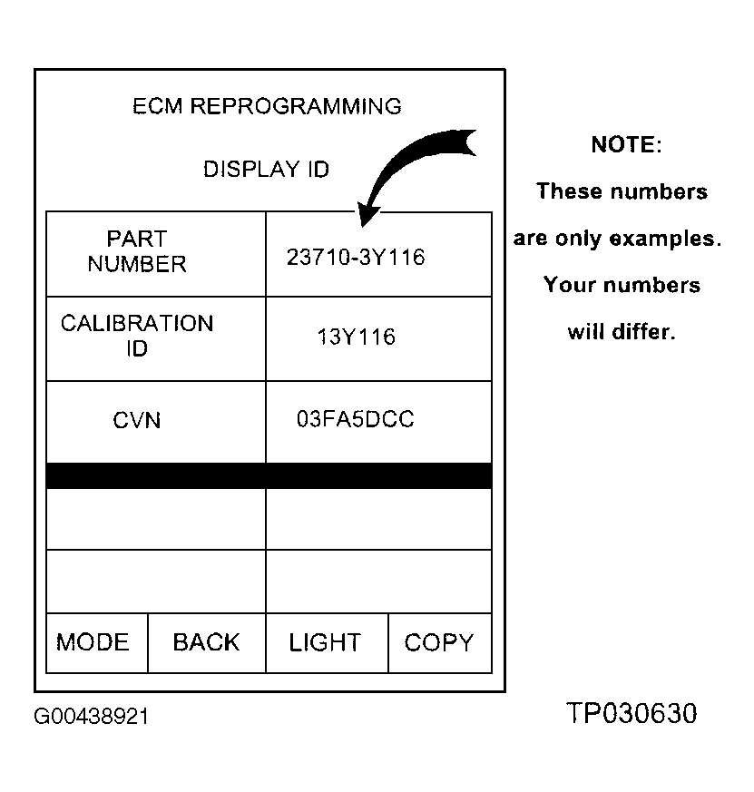 NOTE: This is the vehicle's ECM part number BEFORE reprogramming.