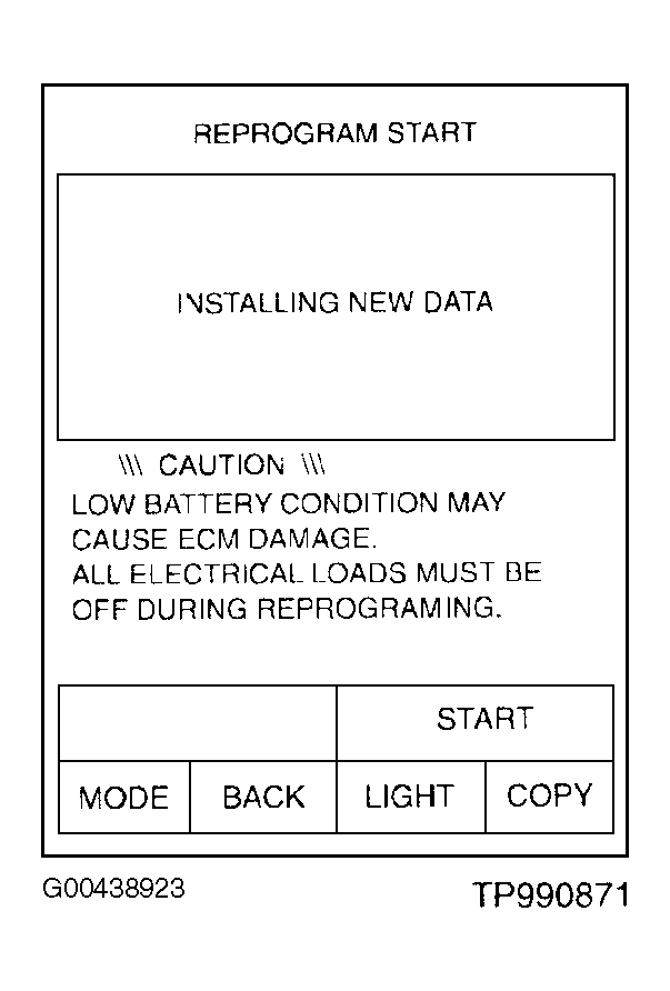 • When the screen backlight goes "OFF", ECM reprogramming has started.