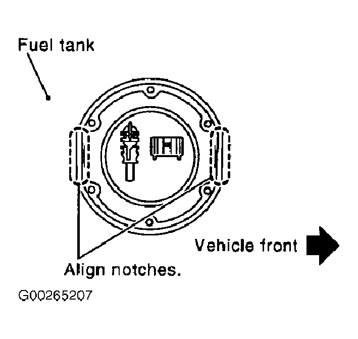 - Install retainer so that its notch becomes parallel with notch on fuel tank. See Figure.