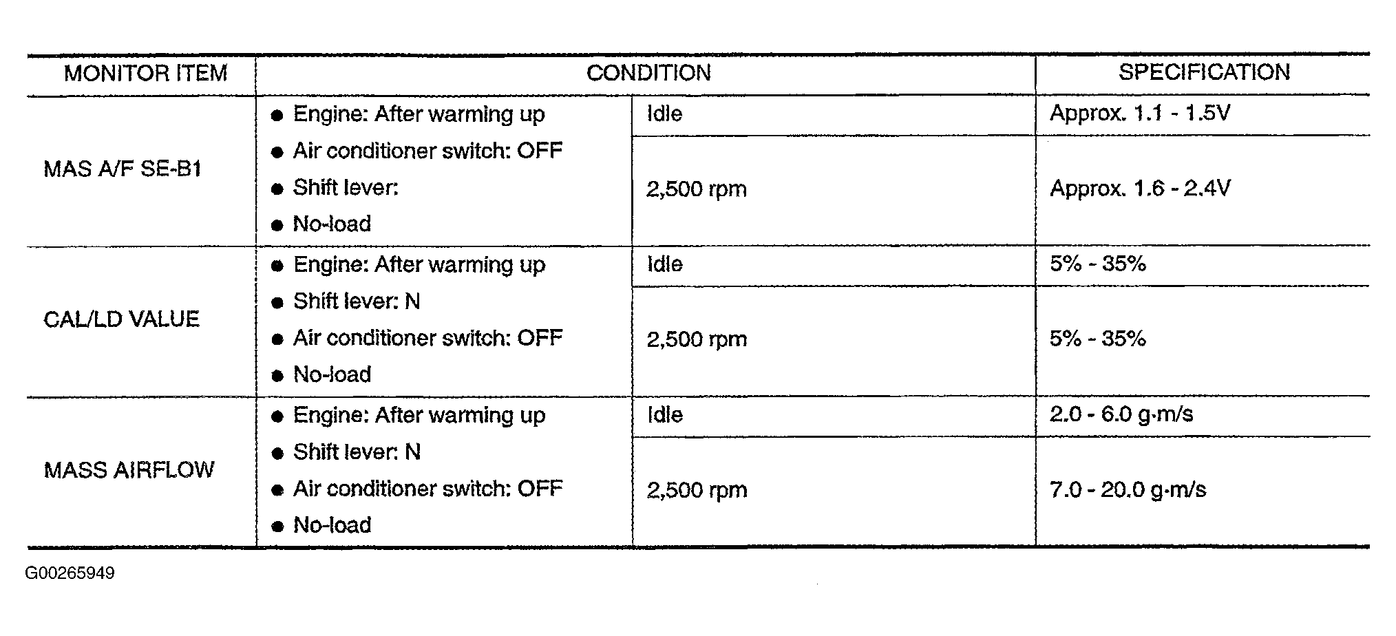 Fig 1: Mass Airflow Sensor Circuit Specification Data