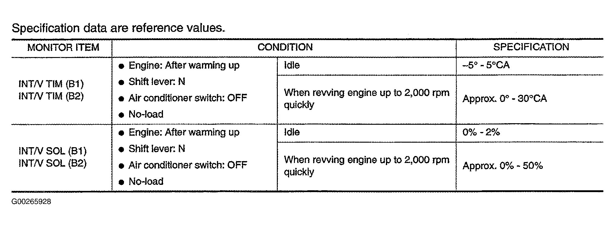 For Intake Valve Timing (IVT) control system data monitor mode specification data, see