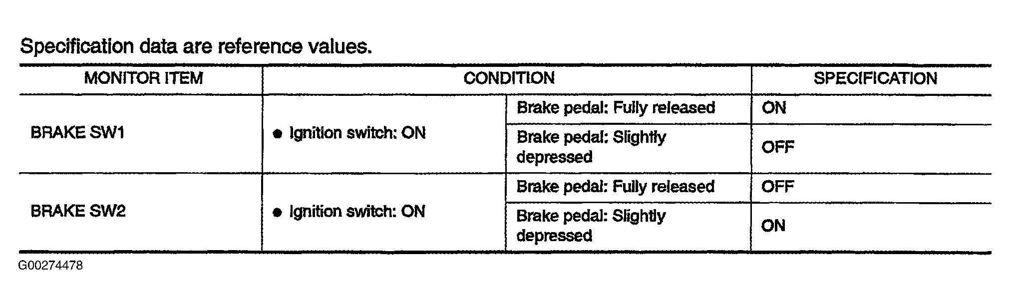 Fig 1: Identifying Brake Switch 1 & 2 Specification Data