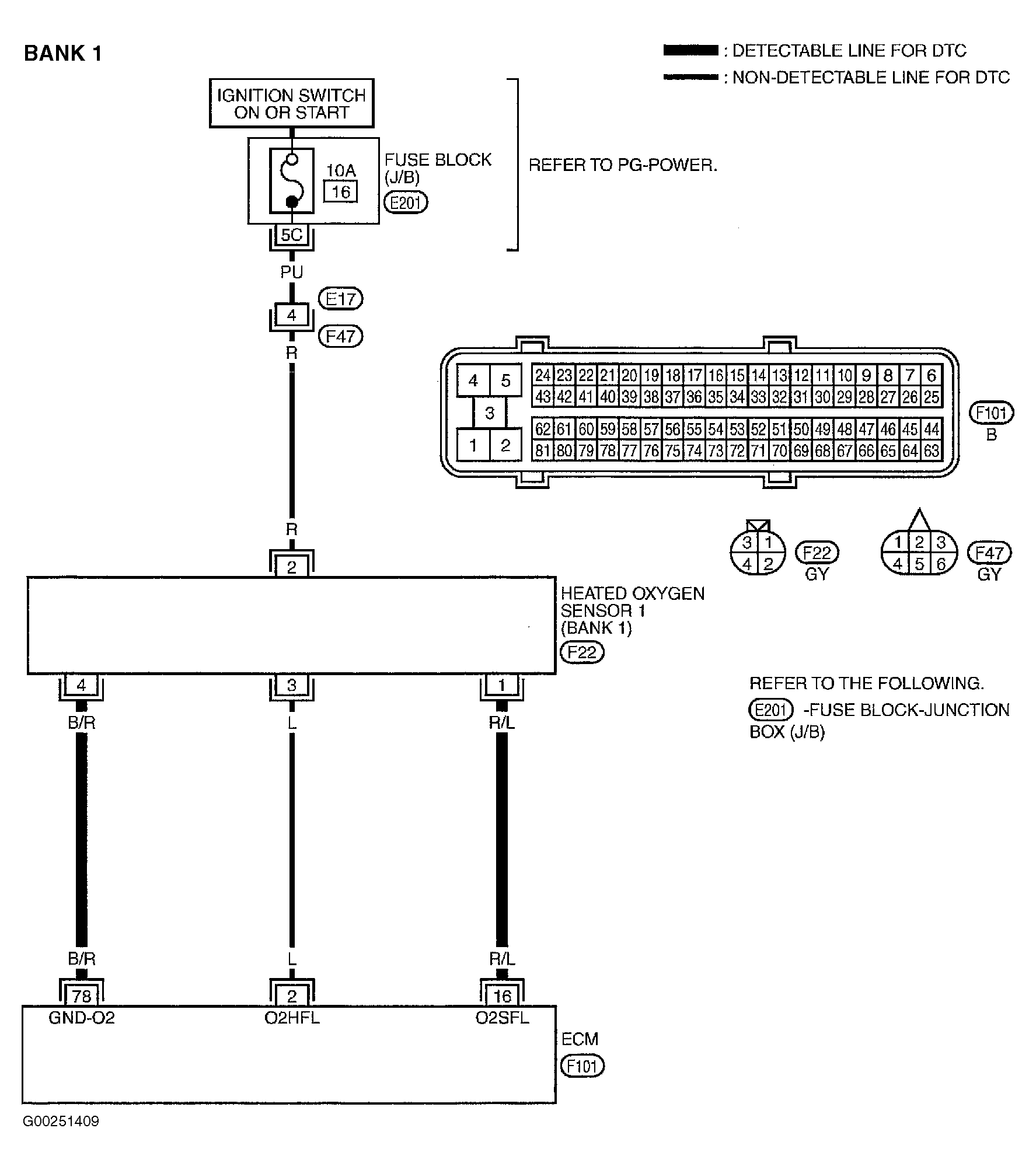 For wiring diagram, see Figure and Figure . For diagnostic procedure, see DIAGNOSTIC PROCEDURE under DTC P0133 OR P0153.