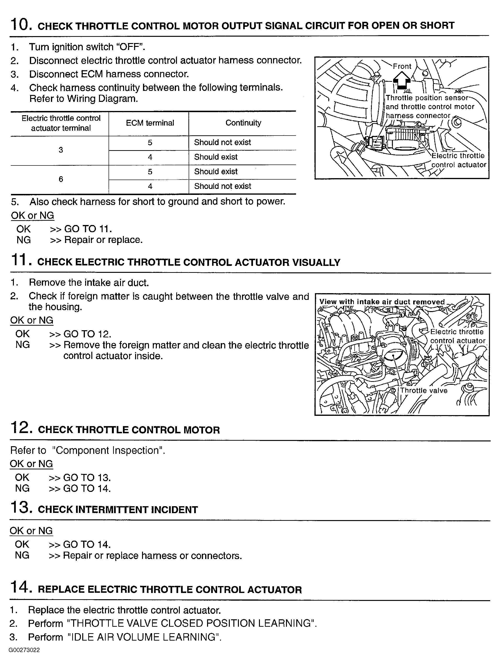 Fig 4: Diagnostic Procedure For Electric Throttle Control Function (Step 10-14)