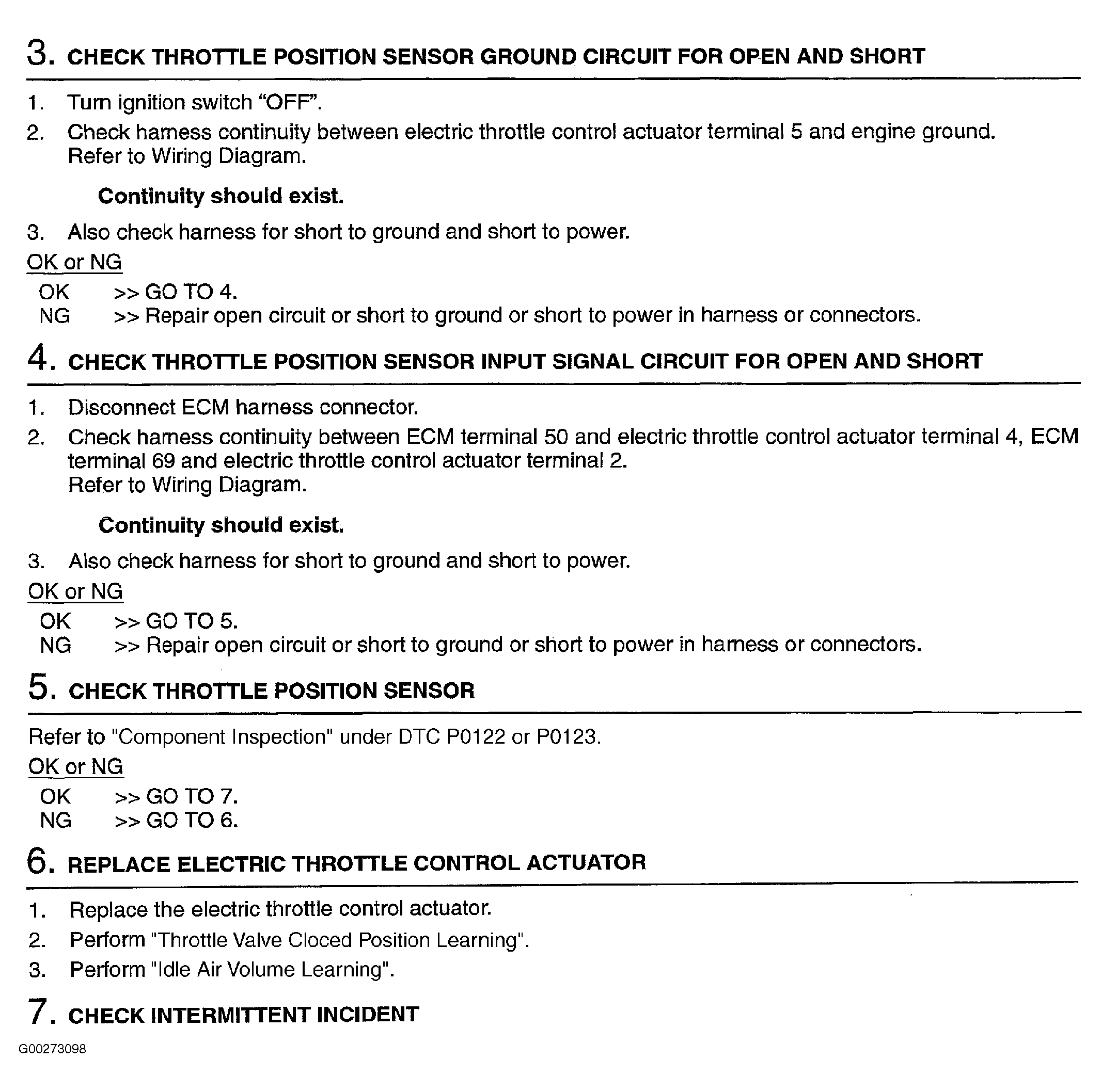 Fig 2: Diagnostic Procedure For Throttle Position Sensor (Step 3-7)