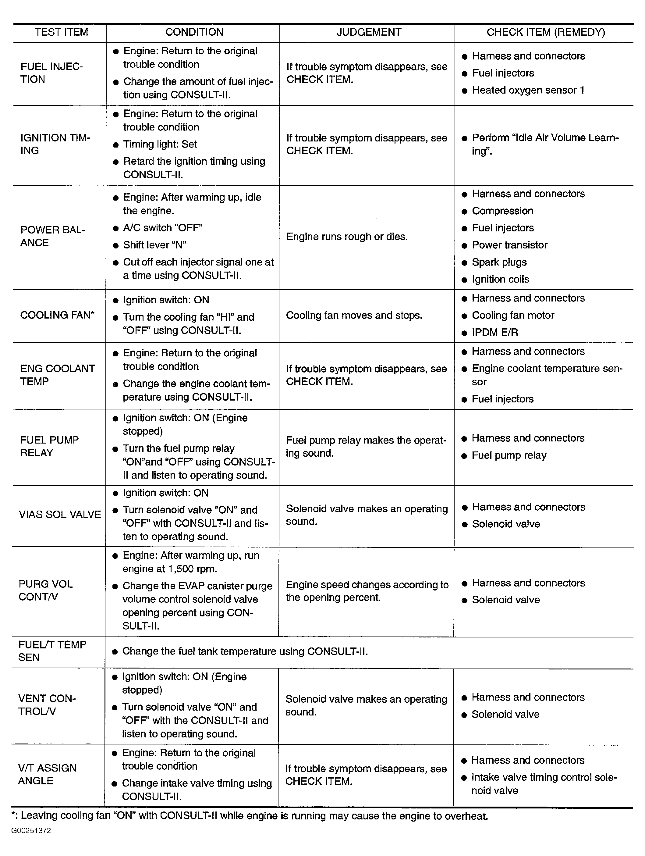 For ACTIVE TEST mode descriptions, see