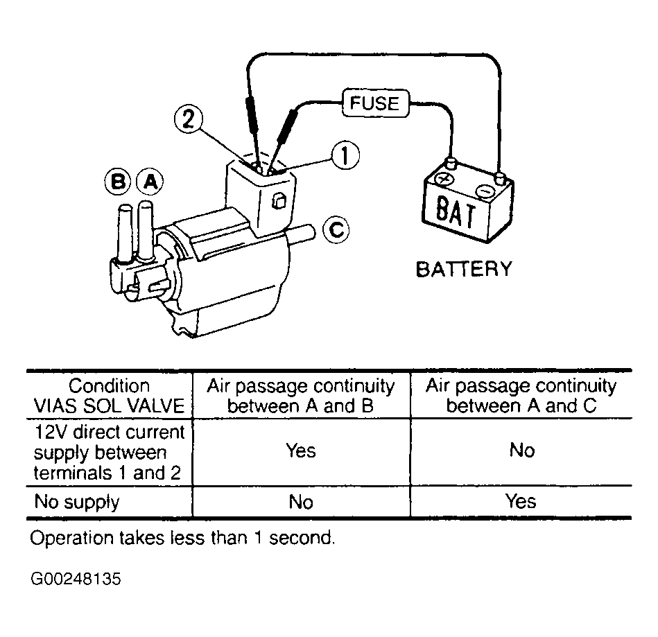 Fig 3: Checking VIAS Control Solenoid Valve Without CONSULT-II (I35)