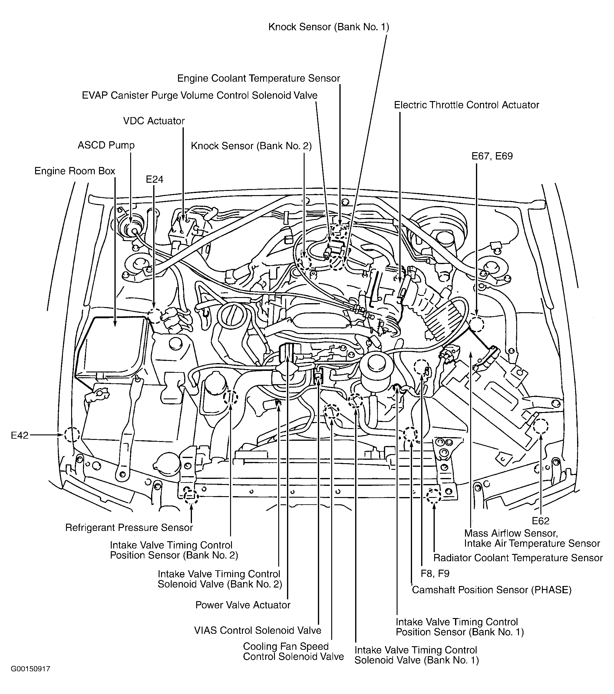 | Fuse, Fusible Link & Relay Box | At right side of engine compartment, in engine room box. |
