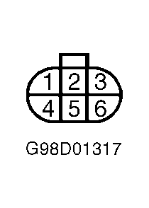 5. Turn ignition switch to OFF position. Disconnect Green 6-pin injector sub-harness connector F21 (for left bank) or F41 (for right bank). Measure voltage between ground and connector F21 or F41 terminal No. 5 (White/Green wire). See Fig 1. If battery voltage exists, go to step  7. If battery voltage does not exist, go to next step.