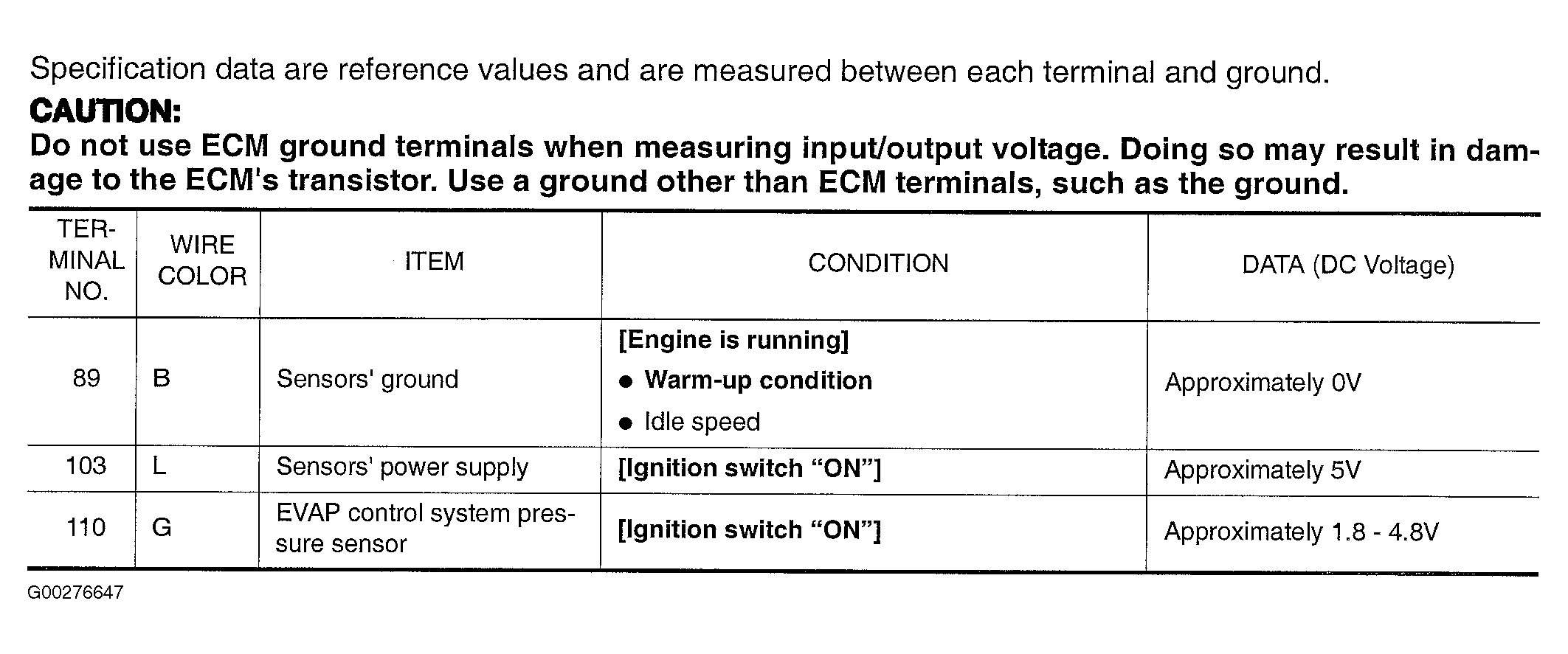 Wiring Diagram & Specification Data For EVAP Control System Pressure Sensor