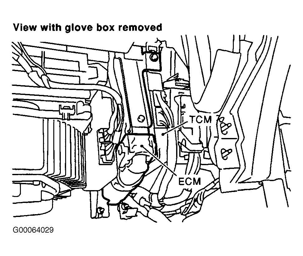 ECM and TCM are located behind glove box. See