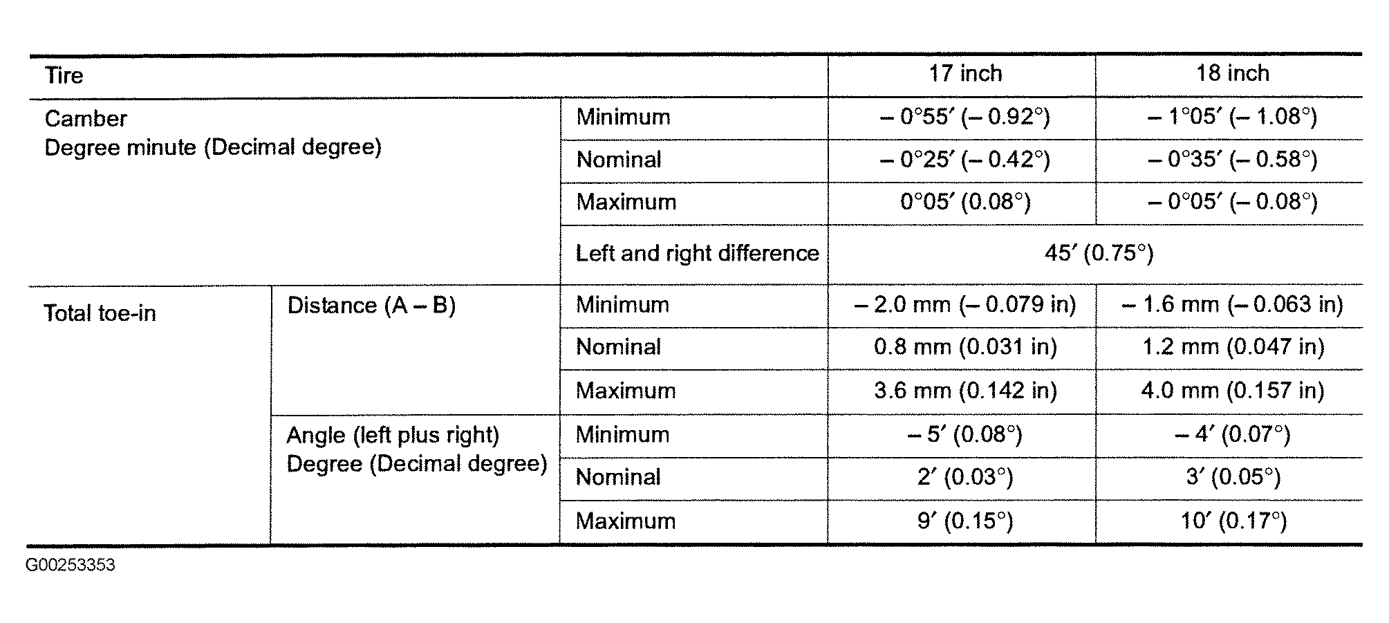 Fig 1: Front Wheel Alignment Specifications (Q45)