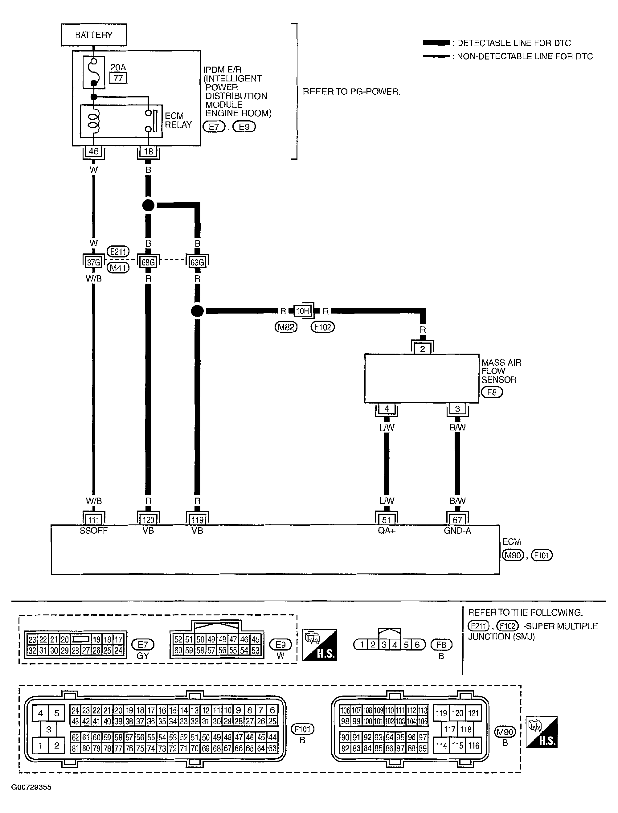 • Harness for open or short between IPDM E/R and mass air flow sensor