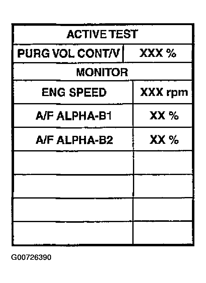 - Perform PURG VOL CONT/V in ACTIVE TEST mode. See Figure.