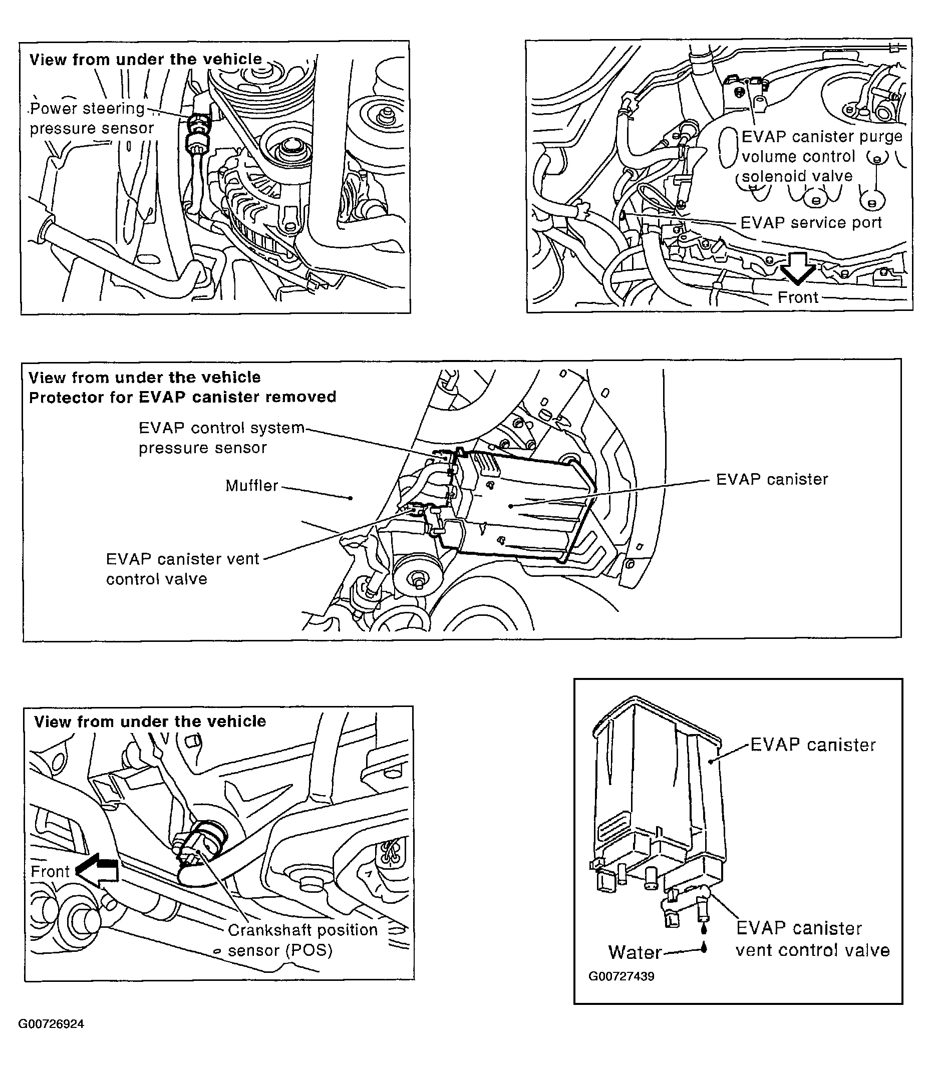 - EVAP hose between EVAP canister and vehicle frame for clogging or poor connection