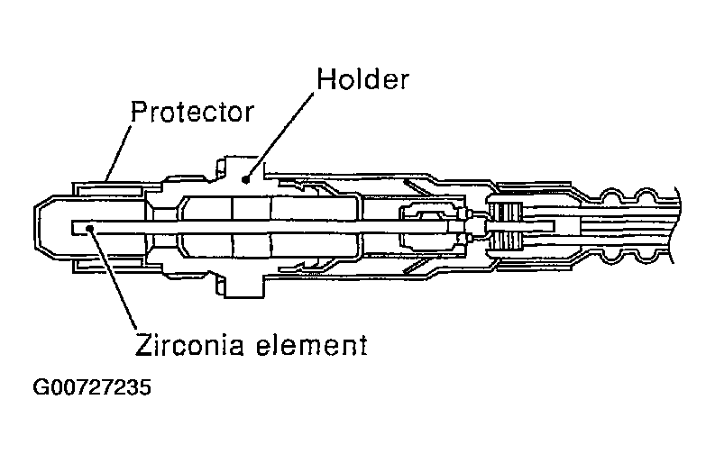 An electronic circuit controls the pump current through the oxygen-pump cell so that the composition of the exhaust gas in the diffusion gap remains constant at lambda = 1. See Figure. Therefore, the air fuel ratio (A/F) sensor 1 is able to indicate air/fuel ratio by this pumping of current. In addition, a heater is integrated in the sensor to ensure the required operating temperature of 700 - 800° C (1,292 - 1,472° F).