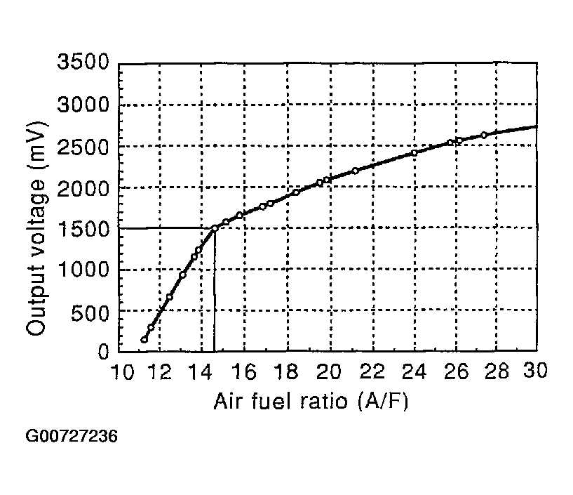 The air fuel ratio (A/F) sensor 1 is a planar dual-cell limit current sensor. See Figure. The sensor element of the air fuel ratio (A/F) sensor 1 is the combination of a Nernst concentration cell (sensor cell) with an oxygen-pump cell, which transports ions. It has a heater in the element. The sensor is capable of precise measurement lambda = 1, but also in the lean and rich range. See Figure. Together with its control electronics, the sensor outputs a clear, continuous signal throughout a wide lambda range (0.7 < lambda < air).