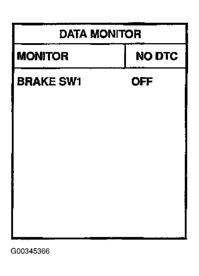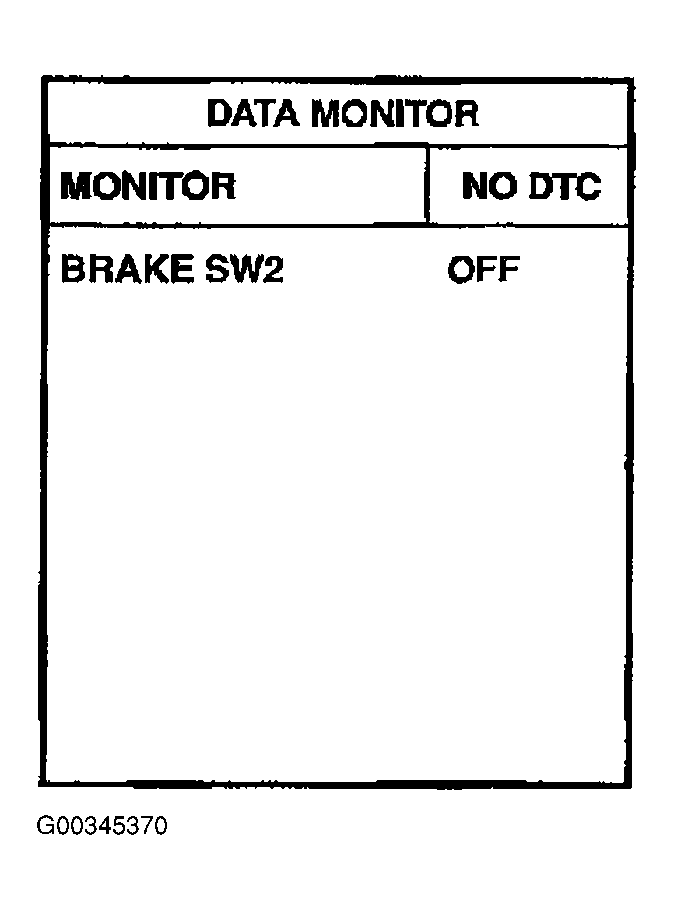 Check BRAKE SW2 indication in DATA MONITOR mode. See Figure and Figure .