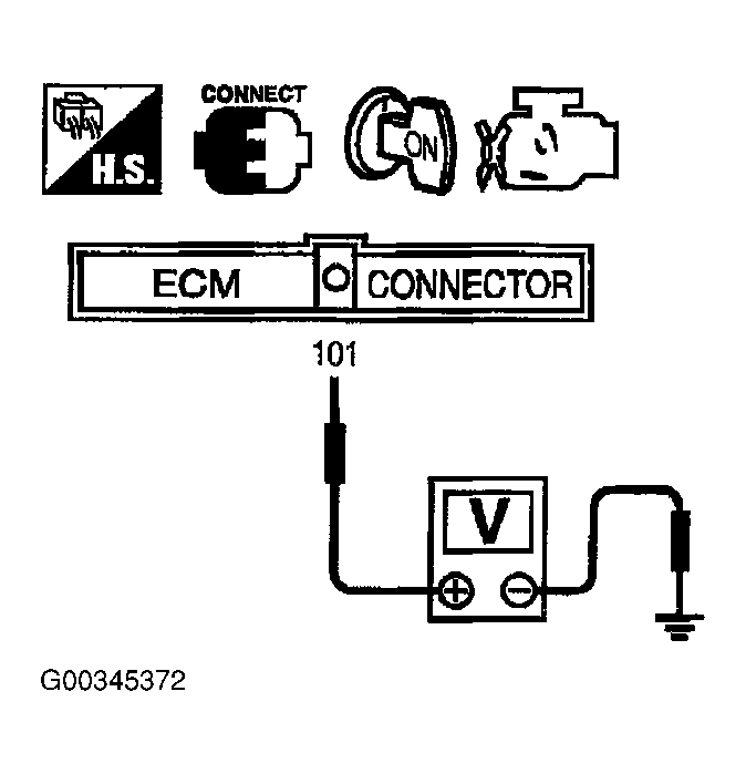 Check voltage between ECM terminal 101 and ground under the following conditions. See Figure and Figure .