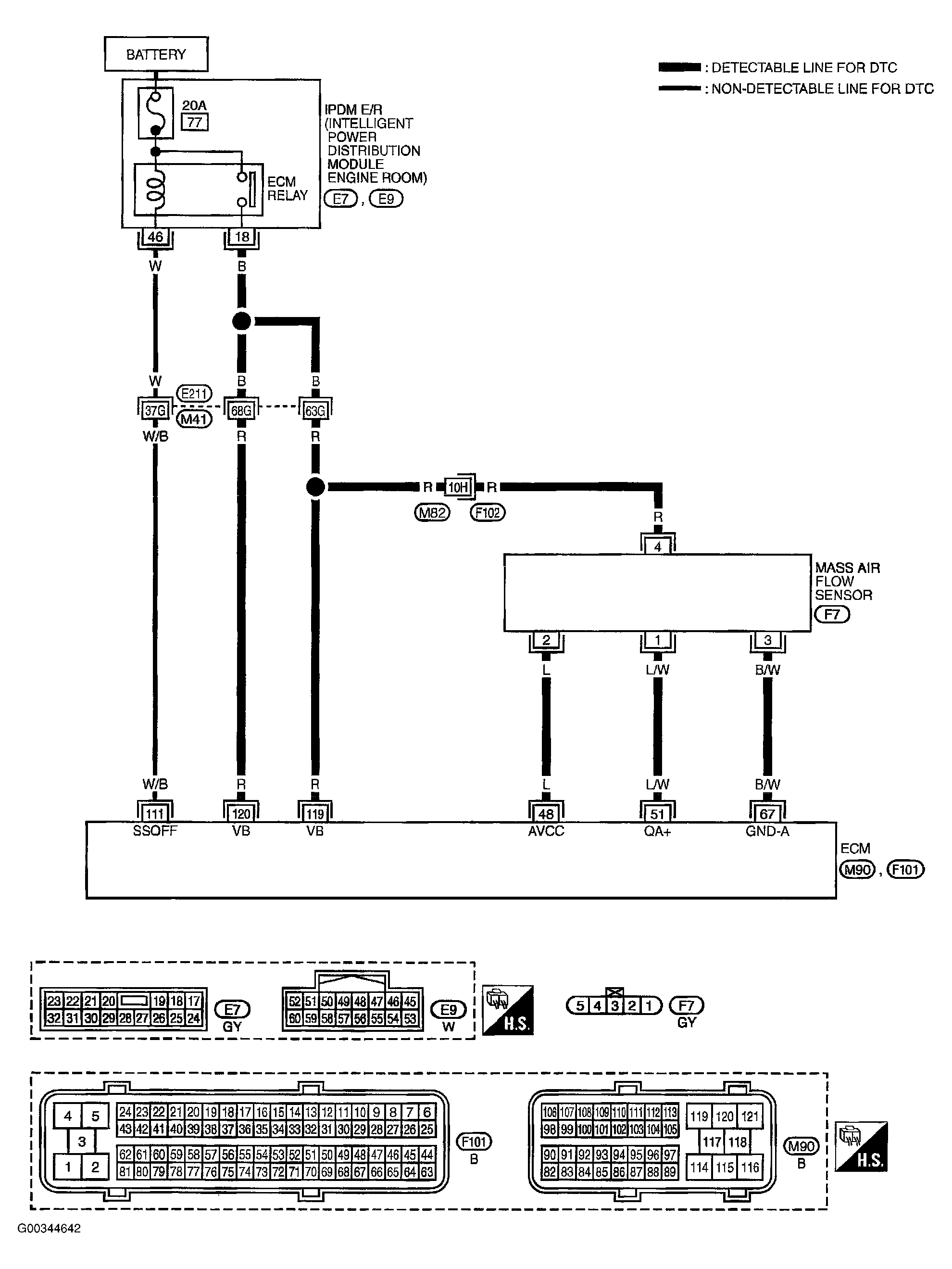 - Harness for open or short between IPDM E/R and mass air flow sensor