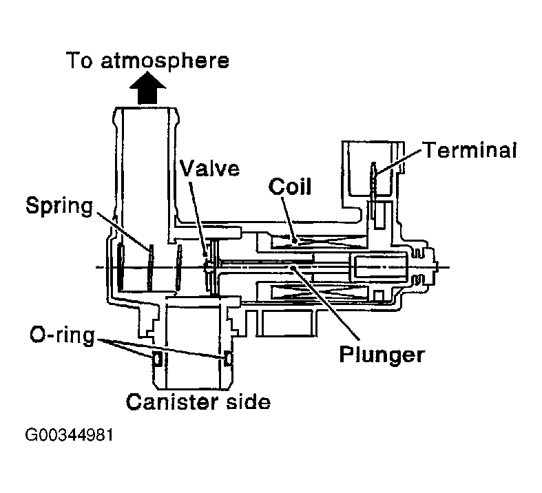 This solenoid valve responds to signals from the ECM. When the ECM sends an ON signal, the coil in the solenoid valve is energized. A plunger will then move to seal the canister vent. The ability to seal the vent is necessary for the on board diagnosis of other evaporative emission control system components. See Fig 1 .