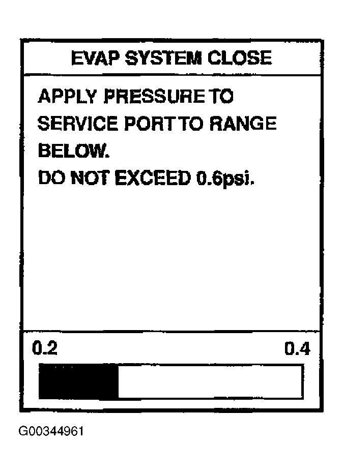 - Touch START and apply pressure into the EVAP line until the pressure indicator reaches the middle of the bar graph. See Figure .